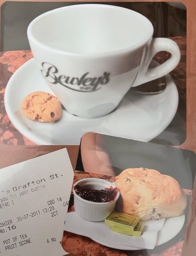While there, I insisted we stop for tea and scones on our last leg of the trip when we were in Dublin. Yes, it was very touristy but this was something I had dreamed of. I must say when the first brought the tea and that tiny thing on the side of the cup! I was NOT impressed.