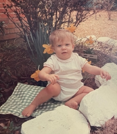 Daffodils were my mom’s favorite flowers. I cannot remember a house she lived in that did not have daffodils blooming in the spring for her to enjoy. The last house she lived in had more tulips than daffodils so I planted more bulbs from time to time. Like the forsythia, they bloom so early in the spring, they bring hope for a new season, new start…less cold. The picture below is of me in Alabama. My father told me one time it was one of his favorite pictures of me. Keeping up what I think of as family tradition, I have planted daffodil bulbs in all the houses I have lived in; I like to think the new tenants are getting enjoyment from them now.