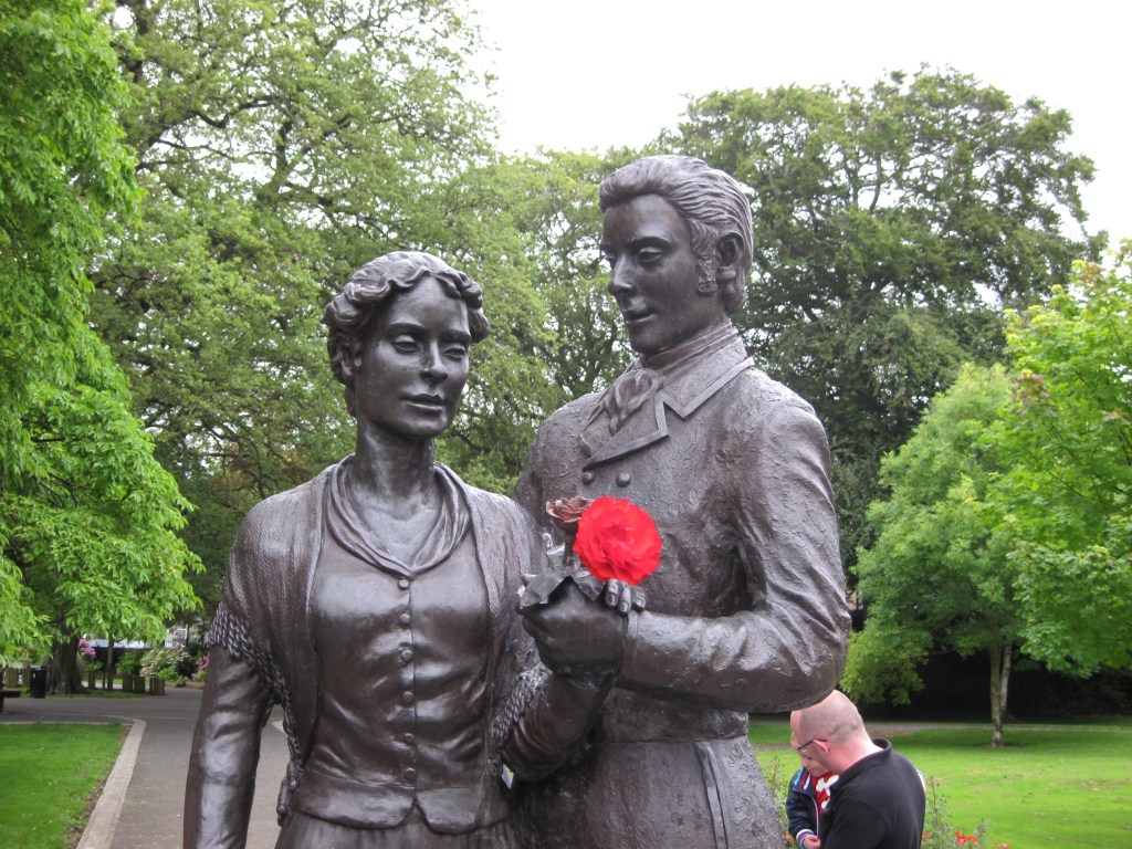 When we visited Ireland our first stop was in the village of Tralee. I had picked it for no other reason than it was close to the Cliffs and not so far to drive the first day after we landed. As it was, we were so exhausted we got there, had tea at the B&B and went to walk to town to find dinner. Refreshed from pints and fish/chips. We walked into town proper and discovered the town park and rose garden.