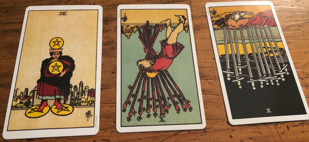 Keeping with my rule of don’t do a spread if you are off balance, mentally fragile or drunk; my cards have not seen the light…